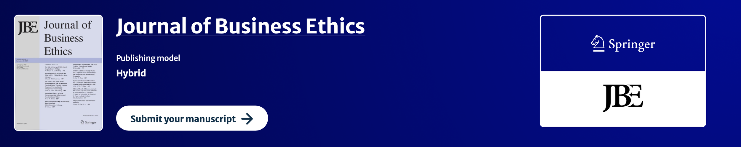 Please submit manuscripts through the Editorial Manager by February 1, 2027. The online submission system will be opened 60 days prior to this submission deadline. Submitted manuscripts will go through a double-blind peer-reviewed process as indicated in JBE’s submissions guidelines.